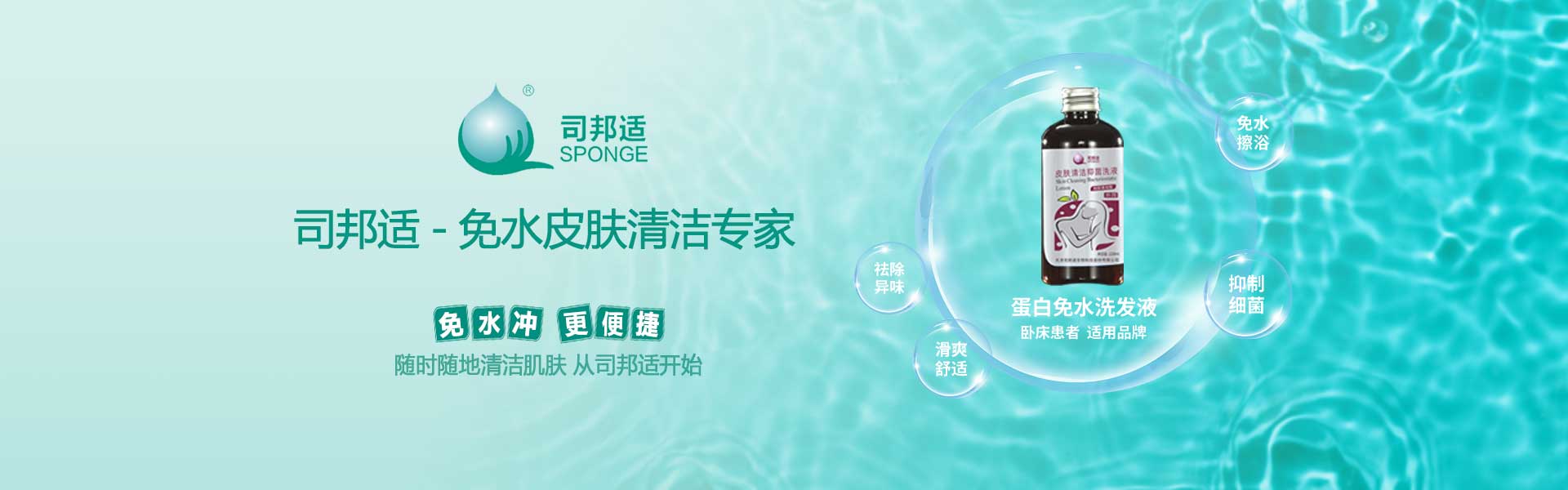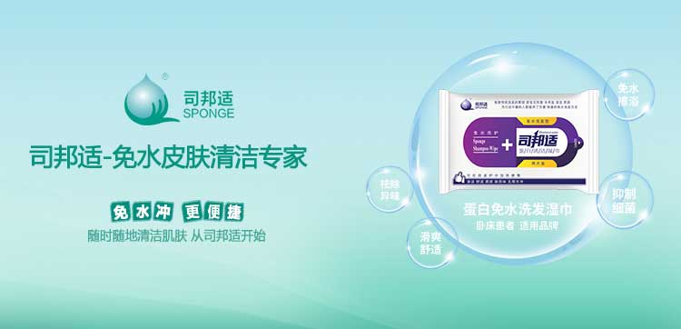 ? ? ? ?本公司研發的司邦適蛋白表面活性因子,不僅對人體皮膚及粘膜沒有刺激,同時具有對皮膚很強的清潔能力;可以祛除人體皮膚上的異味,并且具有較強的抑菌功效。使用后無需用水沖洗皮膚仍感到舒適爽滑;基于上述原因我們研發的司邦適免水清潔系列產品。主要適用于各種主觀或者客觀上不方便全身或局部皮膚清潔的人群。